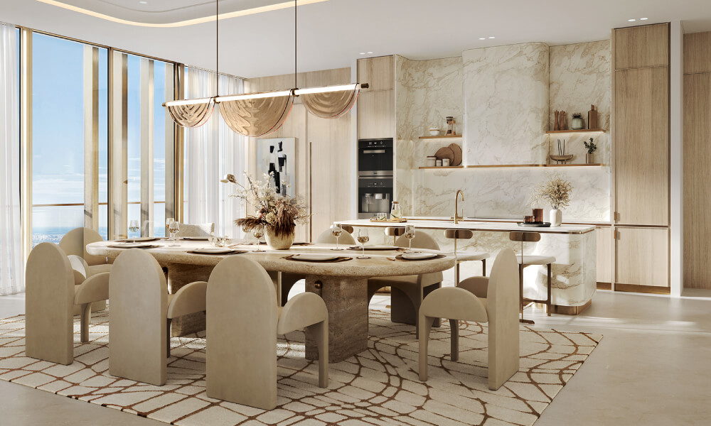 Address Grand Downtown by Nshama is a symbol of elegance in Downtown Dubai, offering luxurious 3 to 5-bedroom apartments and duplexes. This prestigious 55-story tower comprises 80 exclusive residences, designed for those who appreciate sophistication and prime location. With breathtaking views, one side captures the iconic Burj Khalifa and Downtown Dubai, while the other offers serene sea vistas, blending urban vibrancy with tranquility. Its tiered architecture creates a striking visual presence in Dubai’s skyline. Each residence is a private retreat, featuring high ceilings, retractable glass walls, and seamless indoor-outdoor integration. Thoughtful layouts, premium materials, and meticulous design enhance the luxury experience. Interiors embrace refined minimalism with custom furnishings and exquisite detailing. Luxury is evident in marble flooring, built-in wood veneer cabinets, spa-like bathrooms with soaking tubs, and floor-to-ceiling windows. Functional kitchens boast quartz countertops and premium appliances. From an infinity pool to a state-of-the-art fitness center, every space caters to discerning residents. Address Grand Downtown is more than a home—it’s an investment in exclusivity and timeless elegance.