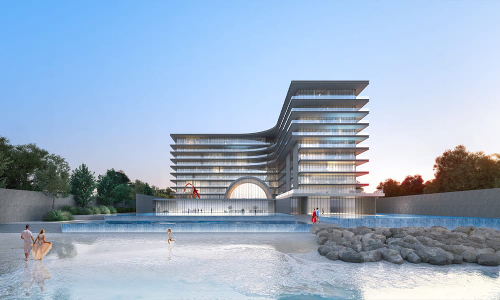 Indulge in the unparalleled elegance of Armani Beach Residences Palm Jumeirah Dubai, This is the final collaboration between Tadao Ando and Giorgio Armani, anticipated to be completed in 2026. This prestigious development is a testament to luxury and architectural finesse. It boasts a variety of amenities, including three swimming pools tailored to all ages, a serene private beach, and a comprehensive gym and spa facility. This exclusive project features 53 boutique residences, encompassing a mix of 2 to 5-bedroom apartments, penthouses, and two exclusive presidential suites on the top floor, each offering roof access. Every home in this development is uniquely designed with a private entrance and terrace, offering residents spectacular views of the private beach, Burj Al Arab, and other Dubai landmarks, depending on their location. Furthermore, residents can customize their living spaces with a choice of elegant light or dark color schemes, adding a personal touch to their luxury abode.