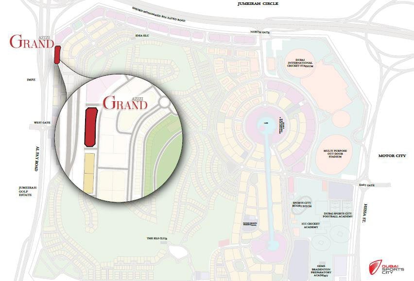 AZIZI GRAND located in Dubai Sports City, is a high-end serviced residential apartment building. The building features a unique design that creates a unique look that is unsurpassed. Azizi Grand features 431 luxurious apartments that offer an unparalleled level of convenience and amenities. Each apartment is furnished and delivered with a modern and fresh interior design.