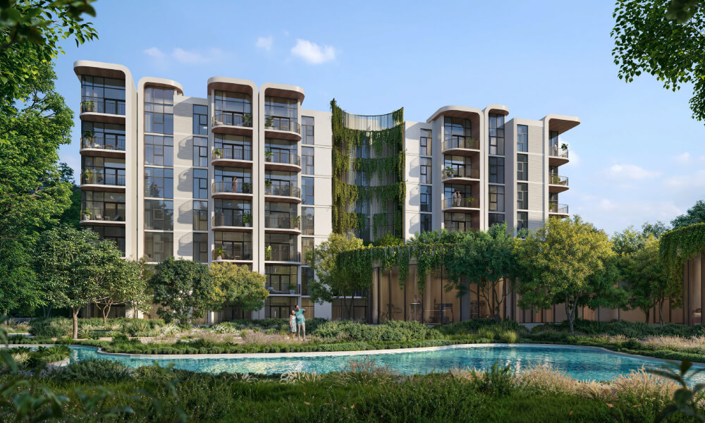 Flexible Payment Plan – Attractive 60/40 payment structure, allowing 60% during construction and 40% on handover., Prime Dubailand Location – Strategically positioned in Ghaf Woods, Dubailand, with easy access to Shaikh Mohammed Bin Zayed Road & Shaikh Zayed Bin Hamdan Road., Spacious 1-3 Bedroom Apartments – Offering well-designed units with high-end finishes, ranging from 829 sq. ft. and above., Developed by Majid Al Futtaim – A renowned developer known for delivering premium real estate projects with high investment potential., Surrounded by Nature & Wellness-Focused Amenities – Features forest pools, yoga decks, organic gardens, and open-air social spaces, providing a serene and holistic lifestyle.