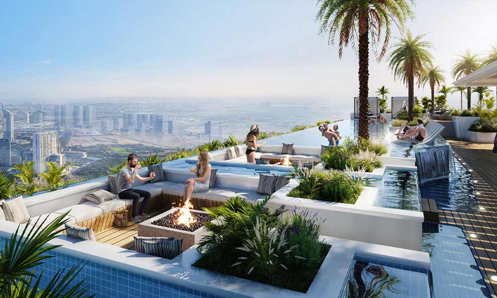 Variety of Units: Choose from studios to 2-bedroom apartments, with floor areas starting from 450 sq. ft., Luxury Amenities: Enjoy top-notch facilities, including a rooftop swimming pool and a fully-equipped gym., Tranquil Lifestyle: Experience a serene living environment just a short distance from the bustling city., Flexible Payment Plan: Book your unit with just a 20 percent down payment., Rapid Development: The project is progressing quickly, with an expected completion date in the first quarter of 2027., Prime Location: Close proximity to major attractions such as Global Village, IMG Worlds of Adventure, and the Dubai Outlet Mall.