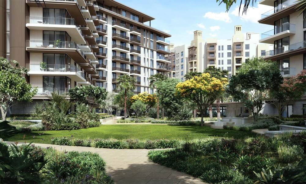 1-3 bedroom apartments and 4-bedroom penthouses, Sleek, bright, and modern interiors, Fusion of traditional and contemporary architecture, Premium amenities including a pool and modern gym, Children’s play area and open recreational spaces, Enriching green spaces with walkways and private entrances, Social areas immersed in nature, Breathtaking views of top Dubai landmarks, Minutes away from premier shopping and entertainment spots, Easy access to public transport and educational institutions, A part of the renowned Dubai landmark portfolio by Meraas
