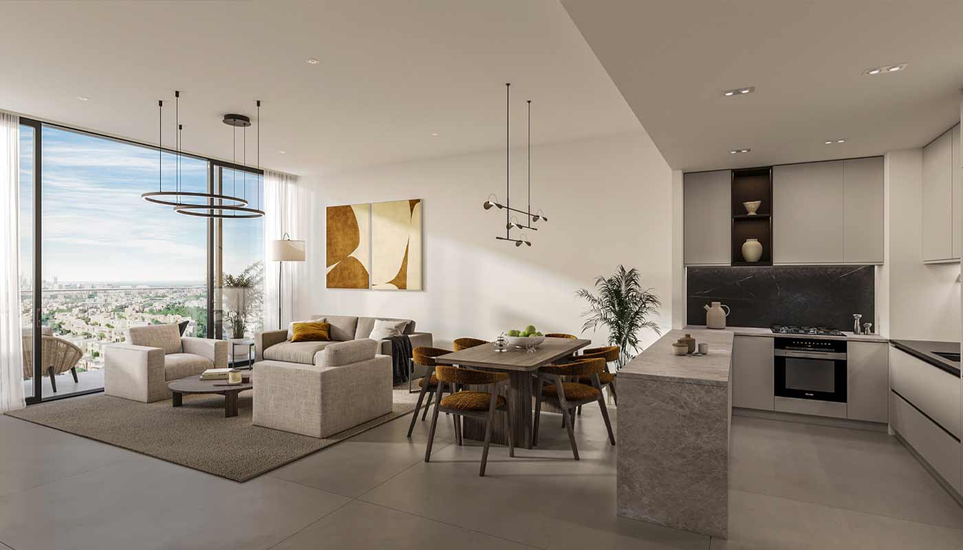 Evora Residences by Anax Developments is an exclusive collection of 77 premium units in the heart of Al Furjan. Choose from thoughtfully designed one-, two-, and three-bedroom apartments, each crafted to deliver a harmonious balance of style and comfort. Step into homes adorned with branded Italian kitchens featuring Bosch appliances, neutral palettes, and seamless layouts that maximize space and light. With floor-to-ceiling windows, every apartment offers breathtaking views and a seamless outdoor connection. The tranquil bathrooms and spacious living areas enhance each residence’s invigorating freshness and revitalizing ambiance. The striking exterior features elegant metal filigree and ambient lighting, setting a new benchmark in modern design. Luxury amenities include an infinity pool with a sunken lounge, a yoga room, an equipped gym, and serene green views, ensuring a lifestyle of leisure and relaxation.