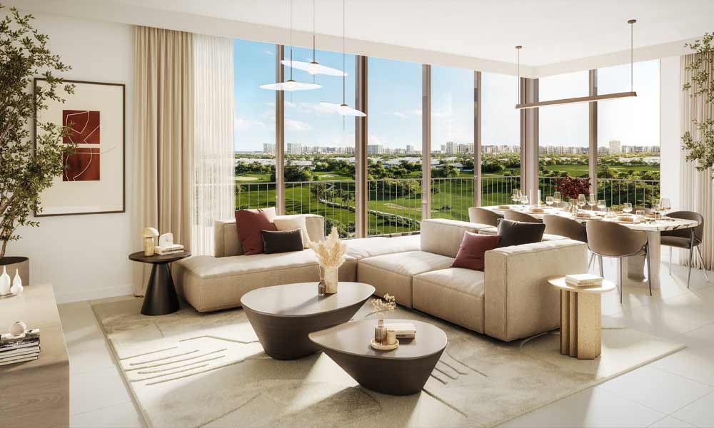 Welcome to Golf Point at Emaar South, a delightful midrise community in Dubai with breathtaking views of the Emaar South Golf Course. These 1 to 3-bedroom apartments offer spacious and comfortable living, ideal for both cozy retreats and larger family homes. Golf Point apartments at Emaar South blend modern design with natural elements. The contemporary façade and earthy palette harmonize with the landscape, providing a sophisticated and tranquil environment. Interiors feature open-plan layouts, neutral tones, and high-quality finishes for a serene atmosphere. Modern kitchens and luxurious bathrooms ensure every detail is designed for your comfort. At Emaar South Golf Point properties, lifestyle is paramount. Enjoy morning strolls along the green fairways or afternoons at the clubhouse. Each window offers stunning views of the rolling green hills and fairways, creating an inspiring backdrop for daily life. Experience the beauty of nature from the comfort of your home.