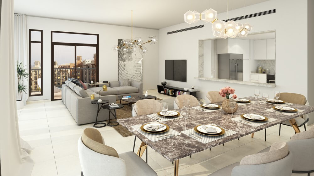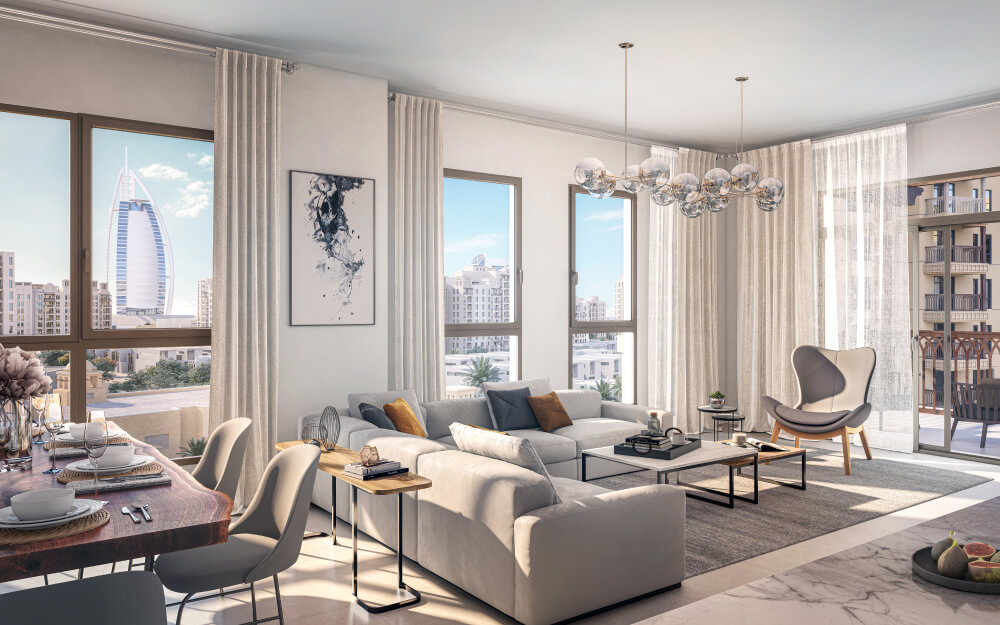 Welcome to Madinat Jumeirah Living. This is an exclusive collection of luxury freehold apartments located just opposite Burj Al Arab, in Jumeirah. It is nestled in a beautifully landscaped development with exquisite views of the sea, and a direct access to the amazing resort, Madinat Jumeirah. This environment-friendly community is safe and perfect for the peaceful lifestyle with no traffic and noise. It is an exclusive address in Dubai’s most prestigious freehold neighbourhood. Choose from beautifully crafted 1 -4 bedroom apartments with magnificent views of Madinat Jumeirah, Burj Al Arab, Burj Jumeirah, and the sea. Handover: May 2025. The interiors are modern and complement the opulence of every apartment. Every home offers the most amazing views of the Burj Al Arab. The layouts are large and spacious, with lovely features that comply with the urban design."