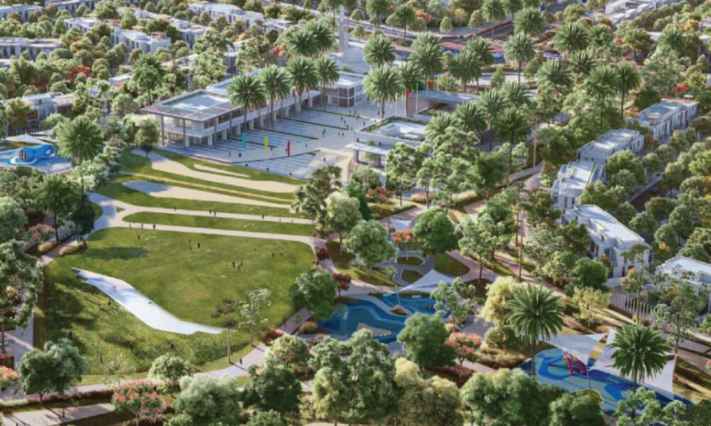 Dubai’s First Crystal Healing Community: A unique development that integrates crystal healing into home interiors., Situated in Greenwood, Dubai’s greenest and newest neighborhood, just 16 minutes from Downtown Dubai., Townhouses and villas designed for modern family living with spacious layouts and high-end finishes., Homes equipped with crystal healing elements, oxygen bars, hydroponic vertical gardens, and aromatherapy features., Energy-efficient designs, solar water heating, EV charging facilities, and green roofs., Enjoy exclusive access to parks, outdoor gyms, retail outlets, private schools, and healthcare services.