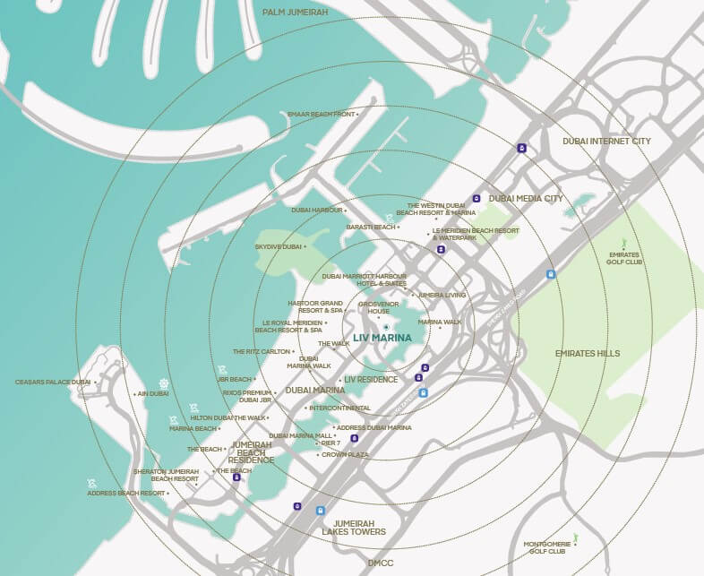 Welcome to LIV Marina. Choose from an eclectic collection of elevated studios, 1 – 3 bedroom apartments and penthouses. Nestled in the “Five Star Quarter” of Dubai Marina.this is where top hotels like Grosvenor House Hotel, Ritz Carlton, Intercontinental, and Le Royal Meridien Hotels are located. Wake up to fantastic views of the sea, the Marina & the Palm, only at LIV Marina.