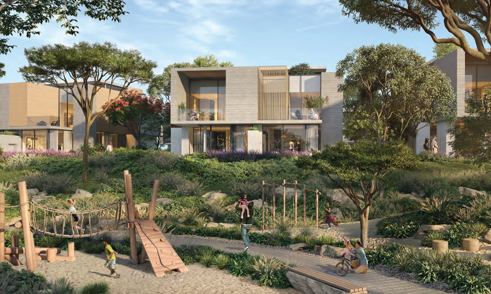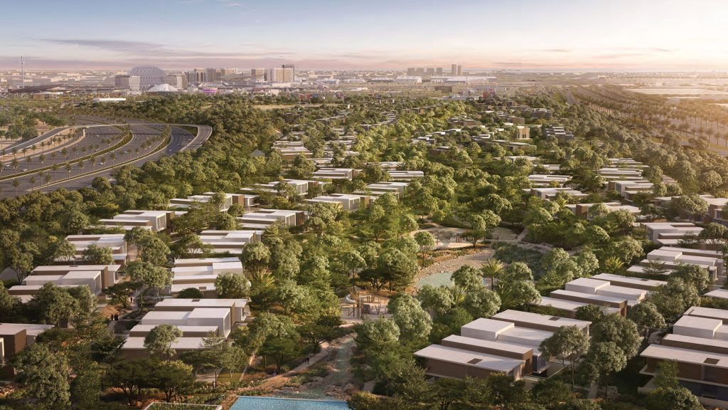 Sustainable Luxury: Live sustainably in lush green landscapes with unique cooling topography and uninterrupted nature reserve views, Prime Location: Minutes from Expo City Dubai, enjoy easy access to all amenities., Flexible Payment Plans: Benefit from 70/30 two-year post-handover payment plans., Ample Parking: Underground parking for up to three cars., Variety: Multiple 5BR villa types to choose from., Convenience: Some villa types offer "Lift" options., Culinary Freedom: Choose between "Show Kitchen" and closed kitchen layouts., Spacious Living: Enjoy built-up areas from 6,901 sqft to 7,535 sqft., Generous Plots: Villas come with plot areas ranging from 7,537 sqft to 13,261 sqft.