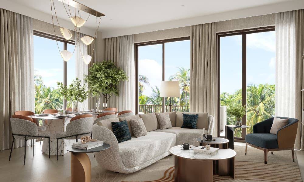 Step into a world of sophistication at Mangrove Emaar, ideally located in Dubai Creek Harbour (DHC), adjacent to the historic Dubai Creek. Mangrove Emaar DHC presents a range of one, two, and three-bedroom apartments for sale, each designed with an emphasis on sleek, modern aesthetics and functional elegance. Situated next to a beautifully landscaped park, Mangrove Emaar offers homes that are a perfect blend of luxury and convenience, with large windows and thoughtfully designed spaces that enhance the flow of natural light. The apartments feature expansive private balconies and terraces that provide stunning views of the surrounding park, offering residents a peaceful retreat from the hustle and bustle of city life. Mangrove Emaar is not just about luxury living; it’s about creating a lifestyle that is harmonious with its environment. The community benefits greatly from its proximity to Mangrove Creek Beach, where residents can indulge in 700 meters of pristine sands, enjoy the leisure of an infinity pool, and experience the magical sunset views that paint the sky every evening.