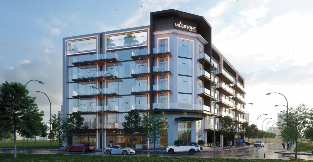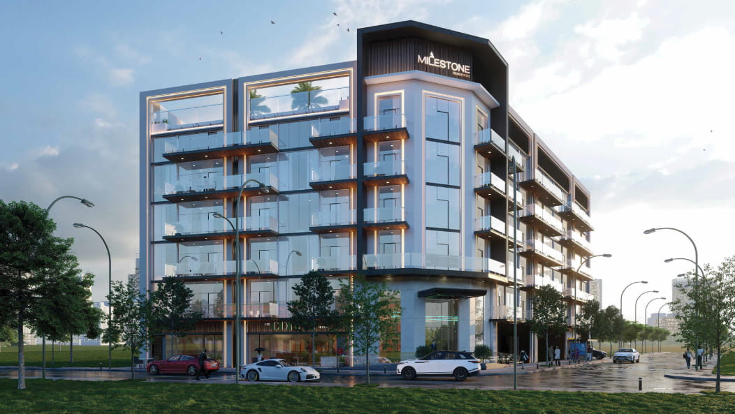 Situated within the prestigious Jumeirah Village Triangle (JVT), Milestone Residences offers a distinguished living experience amidst the picturesque surroundings of lush green landscapes and contemporary amenities.