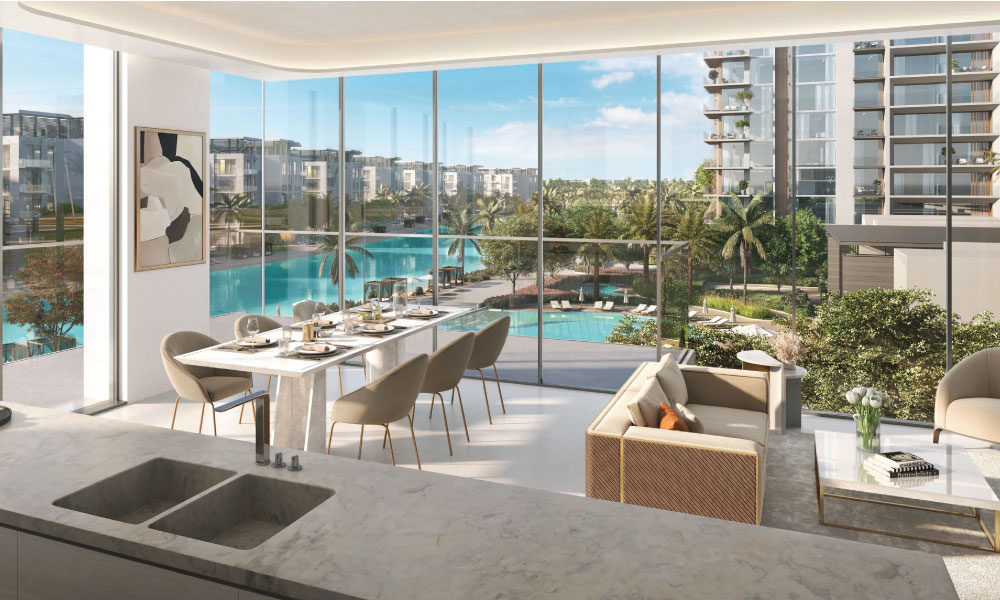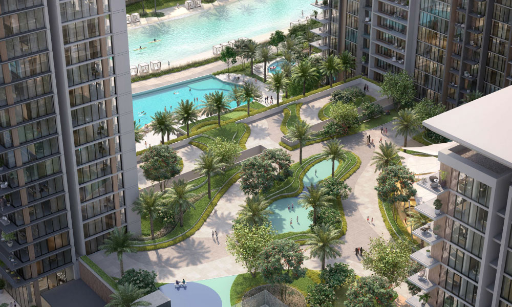 Sophisticated kitchens with premium appliances., Prime location in Mohammed Bin Rashid Al Maktoum City, near major landmarks., Exclusive waterfront living with crystal lagoon access., Abundant amenities for a healthy lifestyle., Luxurious interiors with high-end finishes., Vibrant community atmosphere for families., Over 8.4 KM of cycling/running tracks., Green living with over 60% open spaces., Water sports, kayaking, paddle boarding available., Child-friendly play areas and shaded pools., Inspiring lagoon and skyline views., Secure, 24/7 monitored lobbies., State-of-the-art, fully equipped fitness center.