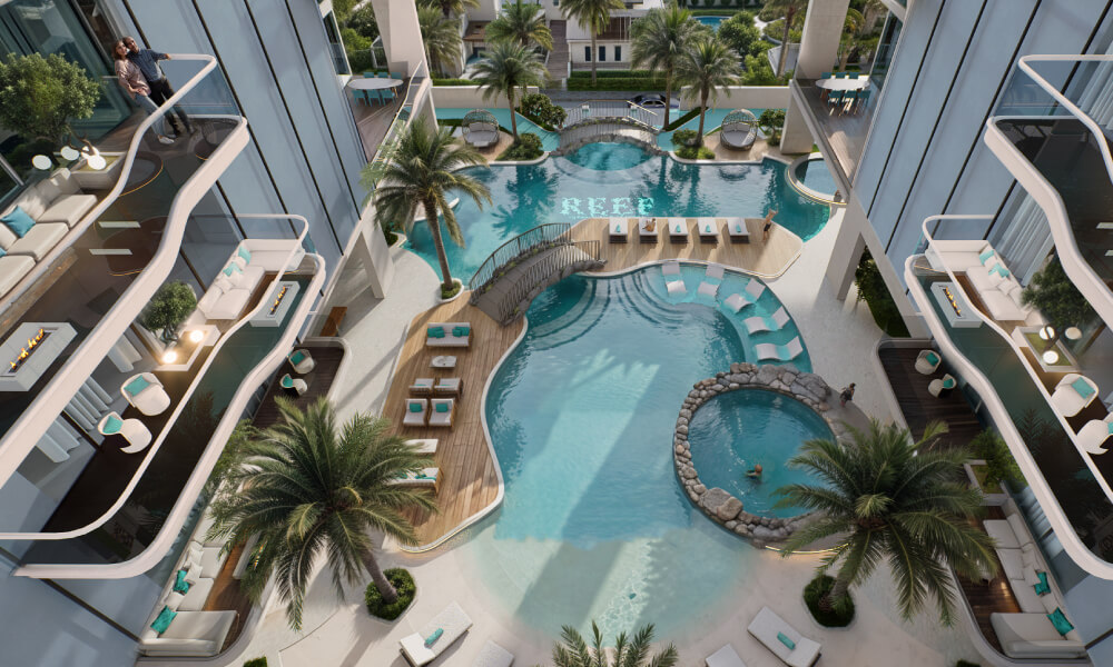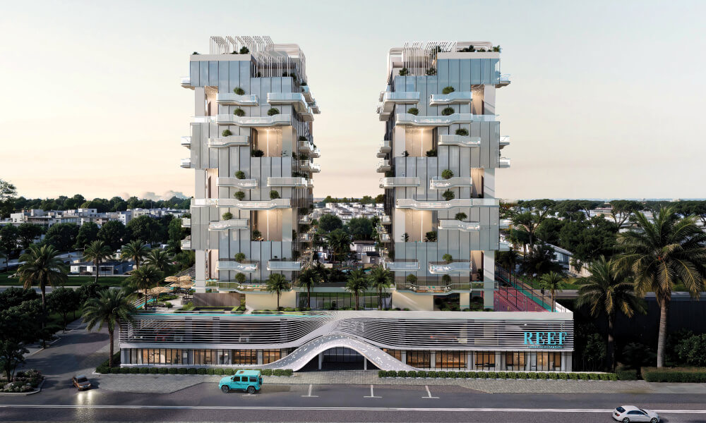 Reef 999 at Al Furjan features patented climate-controlled balconies, allowing residents to enjoy outdoor spaces year-round in absolute comfort., Strategically positioned in one of Dubai’s fastest-growing communities, Reef 999 ensures excellent connectivity to key business hubs and leisure destinations., The development boasts two elegant 12-story towers connected by a sophisticated podium, showcasing architectural excellence and modern design., Reef 999 offers a diverse selection of residences, including 1 to 3-bedroom apartments and 4-bedroom villas, designed for families, professionals, and investors., Residences feature expansive panoramic windows, maximizing natural light while offering breathtaking views of the city., Each home at Reef 999 is designed with high-end finishes and premium appliances, ensuring a perfect blend of sophistication and functionality., The project provides state-of-the-art amenities, including a fitness center, temperature-controlled swimming pool, landscaped gardens, and dedicated children’s play areas.