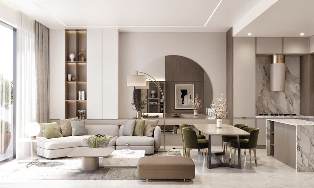 Starting from AED 649K, Apartments with private pools available, Resort style luxury amenities, Strategically located in Arjan Dubai, Located in a thriving community, Surrounded by lush greenery and water features, Retail and shopping facilities, Sustainable and eco-friendly living, Greek styled interiors and exteriors