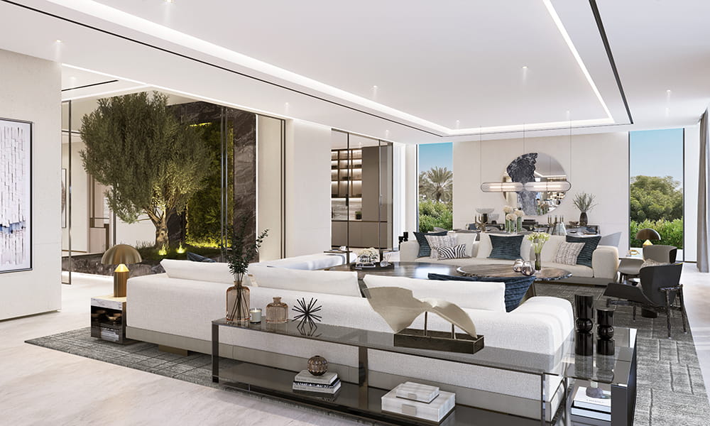 Private and Convenient Access: Each Signature Mansions villa has its own private, shaded lower ground level parking, ensuring a seamless journey into your home., Spacious Living Areas: The villas offer expansive living spaces filled with natural light, enhancing the broad and flexible indoor and outdoor entertainment areas., Attention to Detail: Meticulous planning, a focus on quality, and vibrant interiors of contemporary sophistication define each villa., Community Hub: The heart of Jumeirah Golf Estates is the 12,150 square meter Clubhouse, featuring the finest sports, dining, and leisure facilities, just steps away from Signature Mansions., Exclusive Collection: Signature Mansions is an exclusive collection of modern luxury villas, offering unparalleled views of the Fire golf course, the Dubai skyline, or the lush natural community below., Desirable Address: Positioned as the most desirable address within Jumeirah Golf Estates, each villa is a unique, eye-catching residence., Panoramic Views: Enjoy unmatched panoramic views of the 400-meter wide golf course, with horizon vistas accessible from sunrise to sunset.