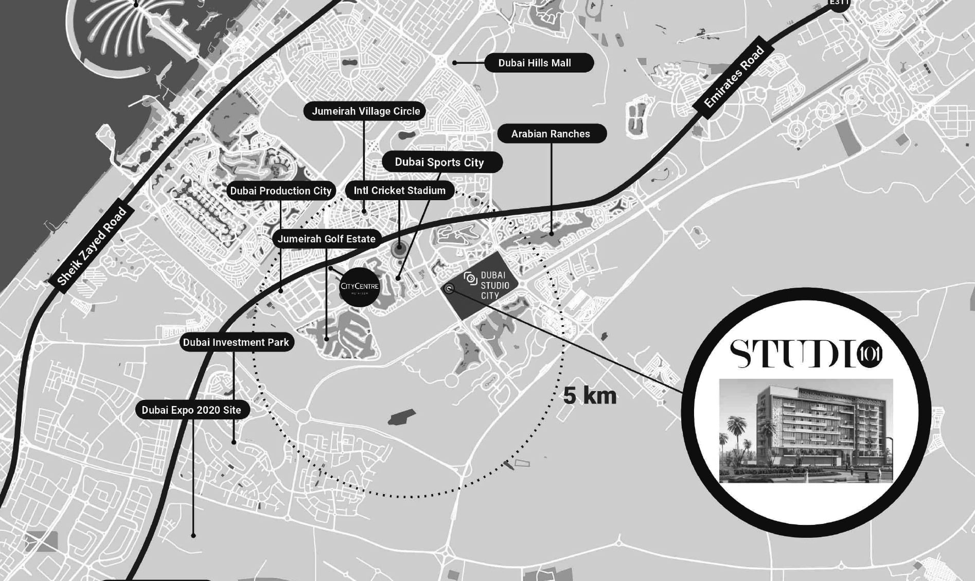 Located at the Dubai Studio city, brings you a new luxurious condominium building with residential units. Highlights include: retail space on the ground and cellar levels, recreational facilities with a choice of restaurants for unique dining experience. Studio 101 will include Studio, 1 BHK, 2 BHK apartments and fully furnished. Dubai Studio City is the right combination of planned infrastructure, endowed collection and dynamic business environment located in the heart of the city. Following the footsteps of Dubai Media City, it is catering to the production needs of the region and has built movie studios like Hollywood sound stages and backlots for various production needs.