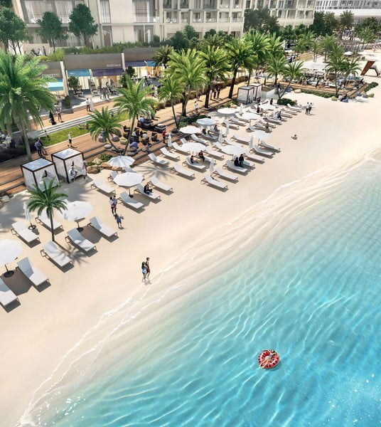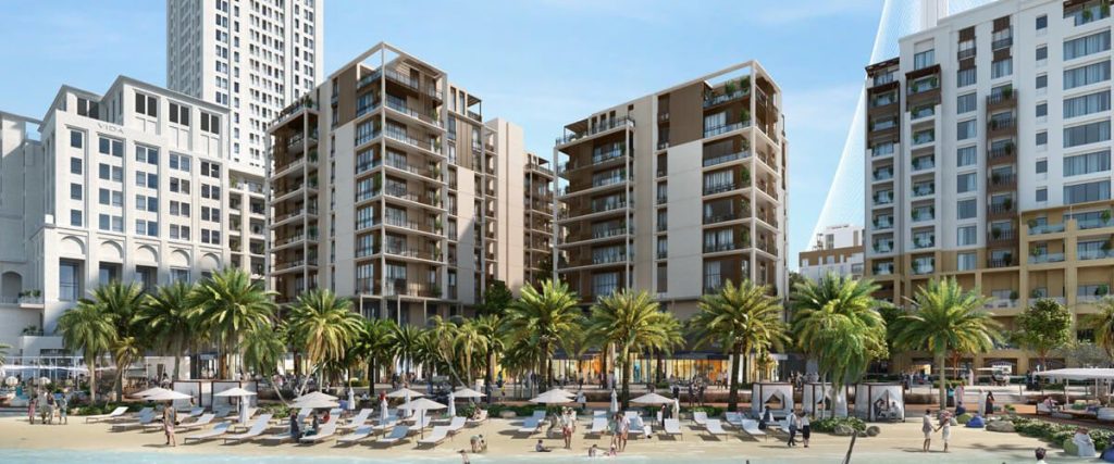 all your favourite attractions are just a short drive away. Private Beach living within urban settings and walking distance to the future biggest attraction – Dubai Creek Tower. Azure waters