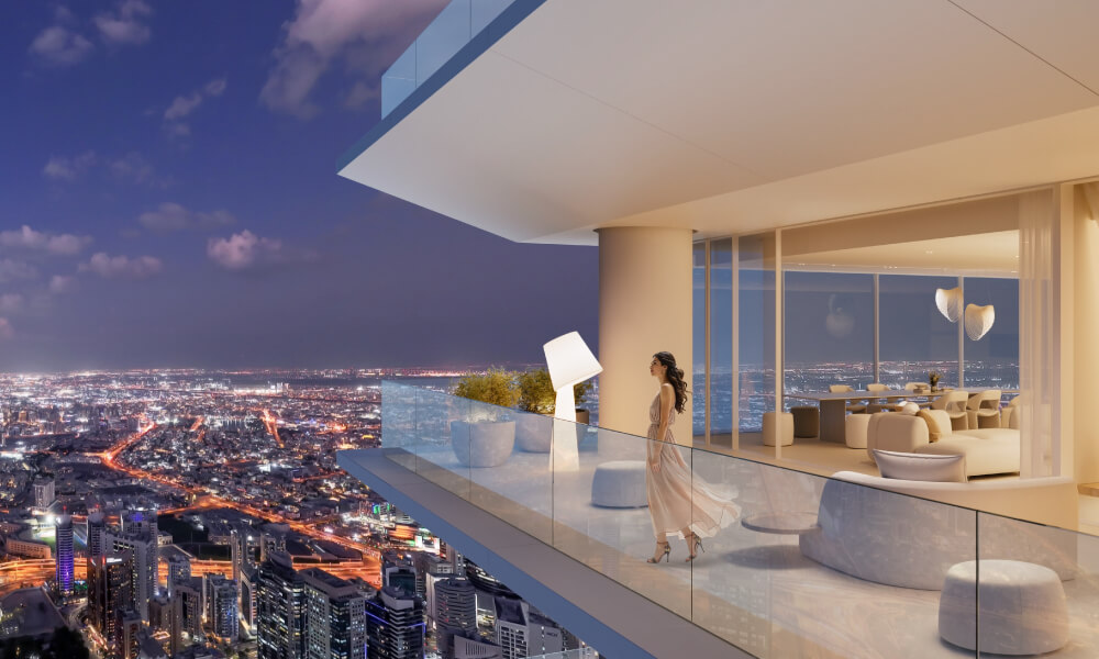Exclusive Branded Living – Fully equipped branded and serviced residences designed for refined, hassle-free luxury living., Unrivaled Location – Situated on Sheikh Zayed Road, offering seamless connectivity to Dubai’s prime business and leisure hubs., Exceptional Interiors – Featuring Italian-designed social kitchens by Pedini, Miele appliances, and elegant travertine finishes for timeless sophistication., World-Class Amenities – Residents enjoy a lagoon-inspired pool, infinity pool, private cinema, health club, and Omakase Dining.